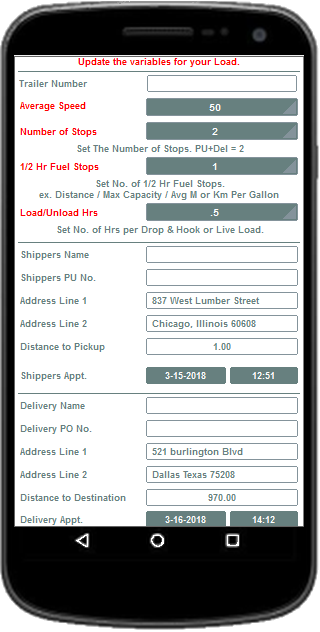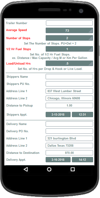 The Truckers Trip Planning App For Company Drivers have the tools to answer the first two questions but it also has the tools for planning how you will run the load (planning your rest breaks has always been a part of this!), tools to handshake with the SmartTruckRoute II App (If needed) for navigation, traffic, and weather alerts, and the tools to maintain your personal Expenses and Accounting.