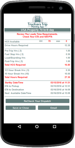 Remember this first. The Truckers Trip Planning App was originally released in 2016 to answer the three main questions that you need to answer before accepting loads so that you can run acceptable loads rather than having the stress and financial difficulty of running unacceptable loads. "Planning Ahead for Hours of Service Breaks" is an integral part but is not the primary reason for which the Truckers Trip Planning App was built. Now that we have that in it's proper perspective;
